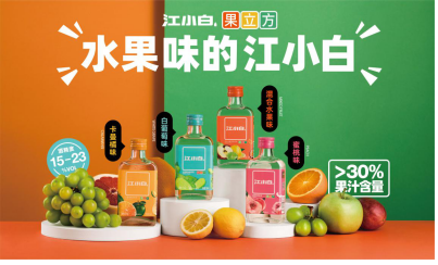 9月8日,江小白公布新品果立方系列。該系列包含白葡萄味、混合水果味、卡曼橘味、蜜桃味等多款水果高粱酒產品,度數在15-23度之間。