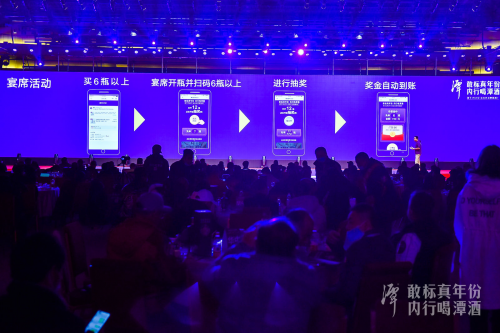 在論壇大會上,潭酒智慧零售中心總經理方曉圓進行的“潭酒創新模式系統演示”。從經銷商,到終端網點,再到消費者,潭酒將設計到的每一個環節、每一個步驟都清晰直接地進行演示,這成為現場頗具參與感、說服力以及場景化帶入的深度互動體驗。