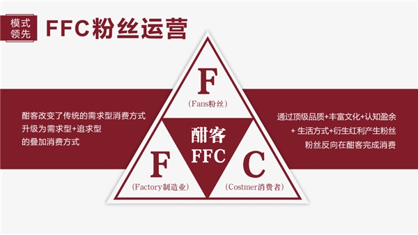 FFC即Factory-fans-customers,顧客是粉絲,經營者也是粉絲,粉絲作為市場經營的主體,鏈接消費者和企業。
