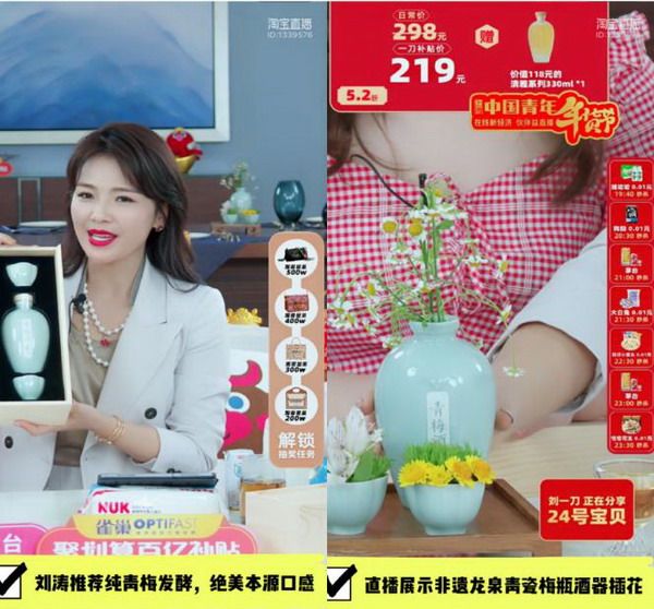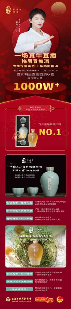 劉濤×聚劃算百億補(bǔ)貼,共青團(tuán)上海市委員會(huì)、上海市青年聯(lián)合會(huì)共同推薦的梅眉青梅酒,作為一個(gè)新銳果酒品牌,首次直播迎來(lái)超1000W+曝光,當(dāng)日直播間劉濤詳細(xì)介紹了梅眉只選用鮮青梅發(fā)酵的匠心工藝,除水、糖、酵母外不添加任何香精、色素和食用酒精。純青梅發(fā)酵的絕美本源口感和東方美學(xué)式梅瓶酒器獲得了廣大觀眾的關(guān)注和認(rèn)可,要求返場(chǎng)的呼聲十分熱烈!