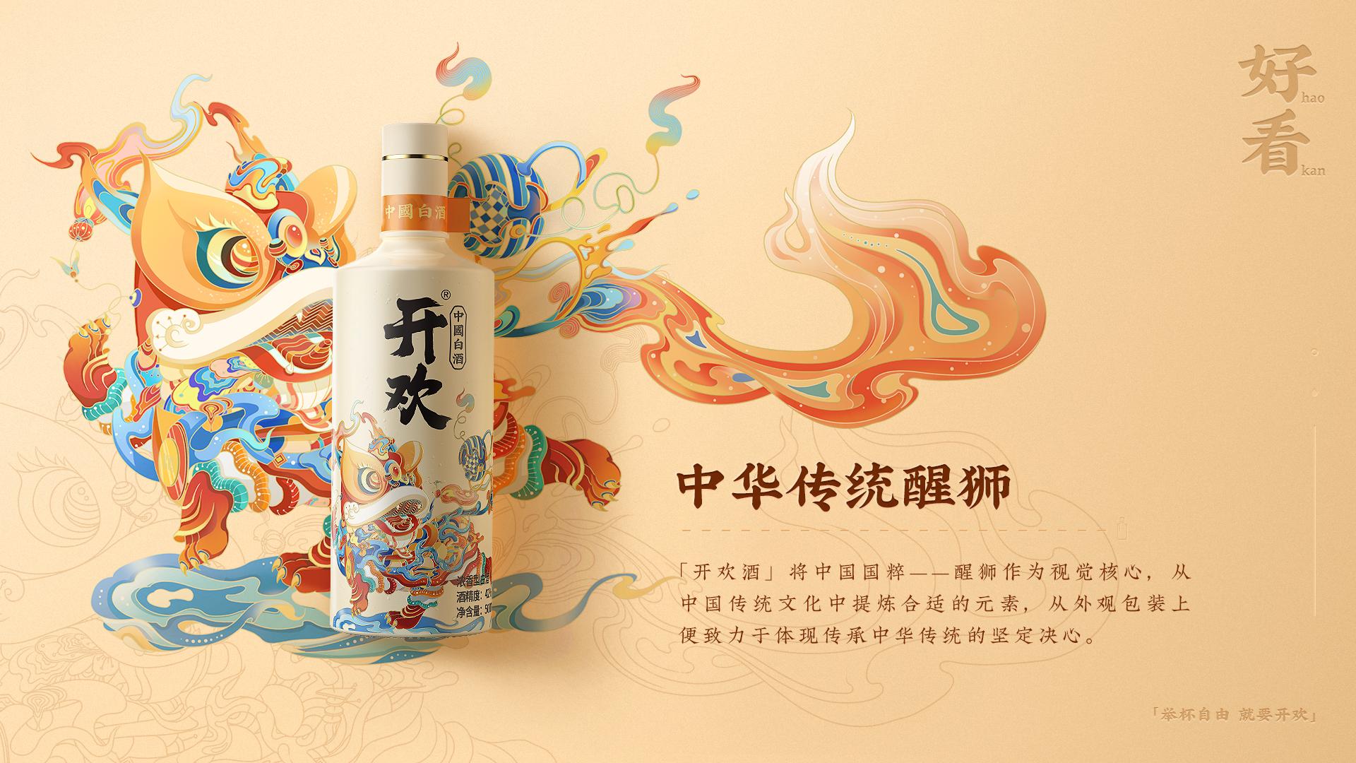 在包裝上,歡愉昂揚、活潑躍動的“醒獅”形象十分亮眼,這正是開歡酒獨特的品牌元素——開歡獅。這一創(chuàng)意來自我國國粹醒獅,寓意吉祥如意,同時也象征著勇敢和力量。此形象由我國知名插畫設(shè)計師瘋子木親自創(chuàng)作,以年輕國潮風(fēng)演繹新銳白酒品牌。這一品牌形象也詮釋了開歡的品牌精髓——在傳統(tǒng)的基礎(chǔ)上創(chuàng)新,并以時代視角解讀傳統(tǒng)。