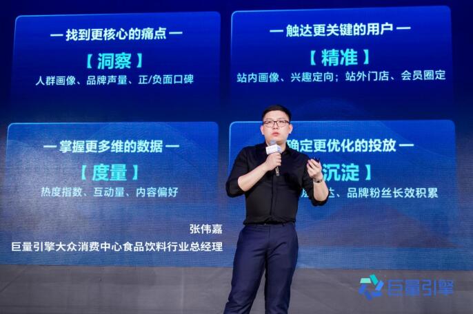 巨量引擎大眾消費中心食品飲料行業(yè)總經(jīng)理張偉嘉介紹巨量引擎“品效銷”三位一體的經(jīng)營方法時稱,“以前是讓人找貨,現(xiàn)在是要通過內(nèi)容,讓貨找人。”