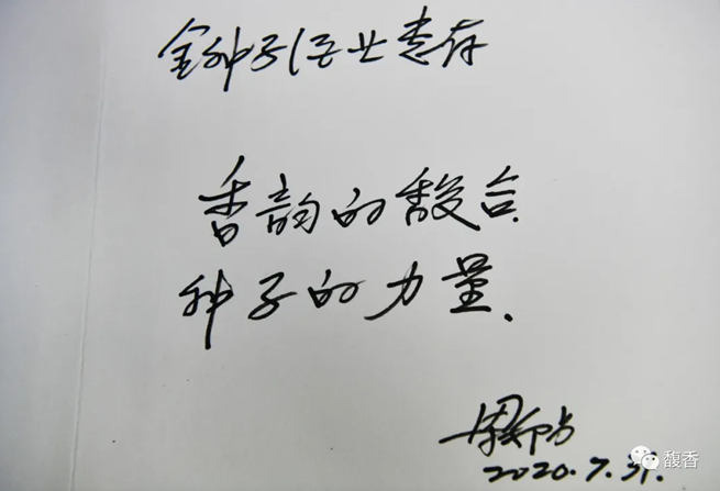 中國(guó)白酒界泰斗梁邦昌品鑒金種子馥合香后,留下墨寶:“香韻的馥合,種子的力量”。