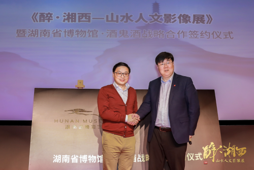 4月16日,由湖南省博物館主辦,中國國家地理·國酒地理、酒鬼酒股份有限公司承辦的“醉•湘西——山水人文影像展暨湖南省博物館·酒鬼酒戰略合作簽約儀式”在湖南省博物館舉辦。湖南省博物館與酒鬼酒達成戰略合作,雙方將在文化活動、展館共建、文創開發、公共教育等方面展開合作,旨在以文化為內核,以跨界為橋梁,通過形式多樣的文化合作將獨特的湖湘文明呈現給大眾,共同承擔起保護文化遺產的責任與使命,為湖湘文化的發展助力。