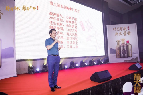 國家級品酒師 · 禧大福生產部總經理黃立強先生,在活動現場慷慨陳詞,和現場嘉賓們共同探討中國醬香型白酒的發展趨勢,細心講述醬酒勾調比例,更是現場傾囊相授醬酒品鑒之道——“禧大福64字品酒真言”!品酒論人生,談笑風生,滿載而歸。
