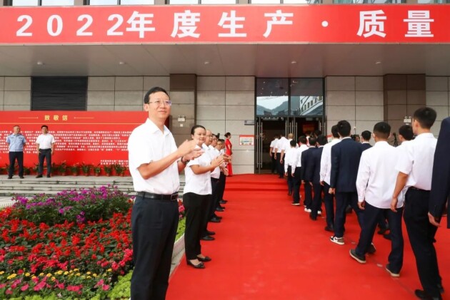 汪地強主持會議時表示,此次會議,與以往相比有三個特殊一是意義特殊,此次大會是習酒圓夢百億后第一個生產·質量大會,總結歷史,開辟未來,也是歷年來規模最大的一次;二是地點特殊,去年的生產·質量大會是在習酒大禮堂舉行的最后一場會議,今年的生產·質量大會是在運營中心階梯會議室召開的第一場會議,目的是在即將啟用的新辦公樓,讓大家感受習酒的發展速度;三是儀式特殊,此次大會特別增加了公司領導迎接參會代表入場儀式,讓更多習酒成就的創造者,在分享喜悅的同時振奮精神提境界、同心同德謀未來、鼓足干勁再出發,以干大事、創大業的奮斗激情,以更高的站位、更大的熱情,蓄力推動百億后的習酒再創新成績、再鑄新輝煌。