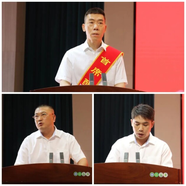 獲聘習酒釀造系列技術職務人員代表(上)、生產車間管理人員代表(左下)、員工代表(右下)發言