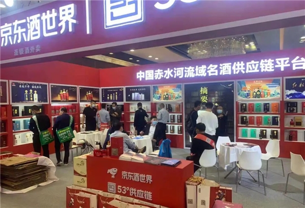 京東酒世界展館位于展區(qū)C位,面積達百坪。走進展位,仿佛來到赤水河流域醬酒核心圈,通過參展的全系新品可以看出,京東酒世界已與金沙窖酒、金沙古酒、貴州夜郎古酒、貴州醇酒業(yè)、貴州國威酒業(yè)等著名品牌展開深度合作,孵化出數(shù)十款戰(zhàn)略級大單品。
