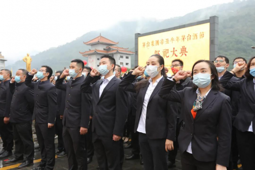 “生產為基、質量為魂、匠心不移、精益求精……愛我茅臺、為國爭光、承先啟后、再立功勛。”拜師儀式結束后,全體參祭人員在卓瑪才讓的領誓下向歷代祖師、宗師鄭重宣誓。這也是茅臺人的品質信仰和質量信仰。