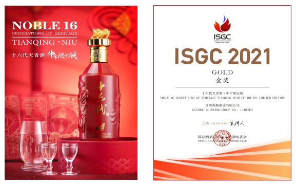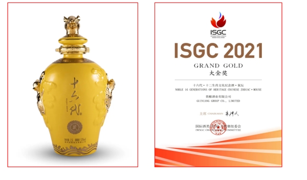2021年10月23日,備受業界關注的2021國際烈酒(中國)大獎賽(ISGC)頒獎典禮在煙臺盛大舉行,貴州美酒鏈科技有限公司旗下的合作賦能產品“十六代•十二生肖文化紀念酒•鼠壇”榮獲大金獎,另一款 “十六代天青酒•牛年限定版”獲得金獎。這是繼今年4月十六代系列產品榮獲2021年德國iF設計大獎后,再次得到國際權威機構和行業的肯定。