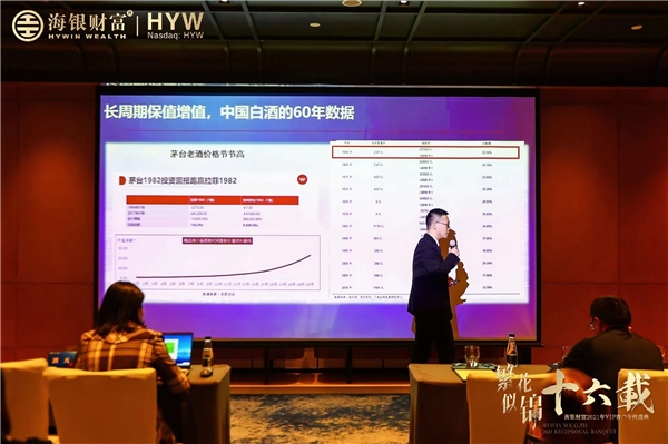 11月14日,由海銀財(cái)富主辦的“繁花似錦十六載”答謝晚宴在浙江杭州隆重舉行。2021年是海銀財(cái)富走過的第16個(gè)年頭,在此重要時(shí)刻,美酒鏈科技作為海銀財(cái)富十六載的見證者,以高品質(zhì)的醬香美酒遞上最真摯的祝福。