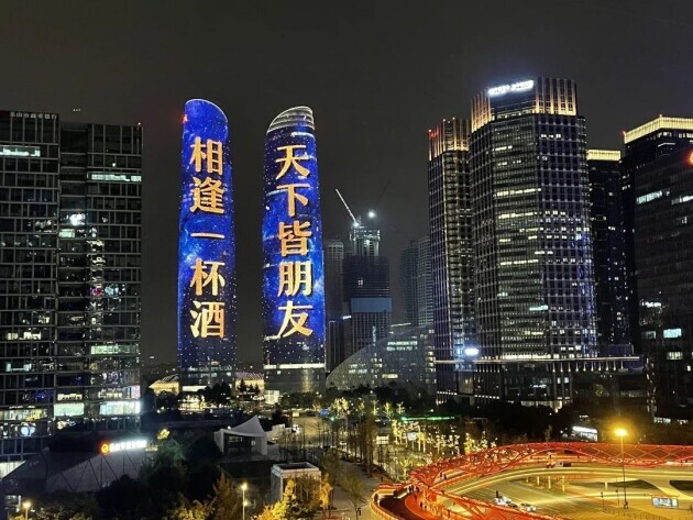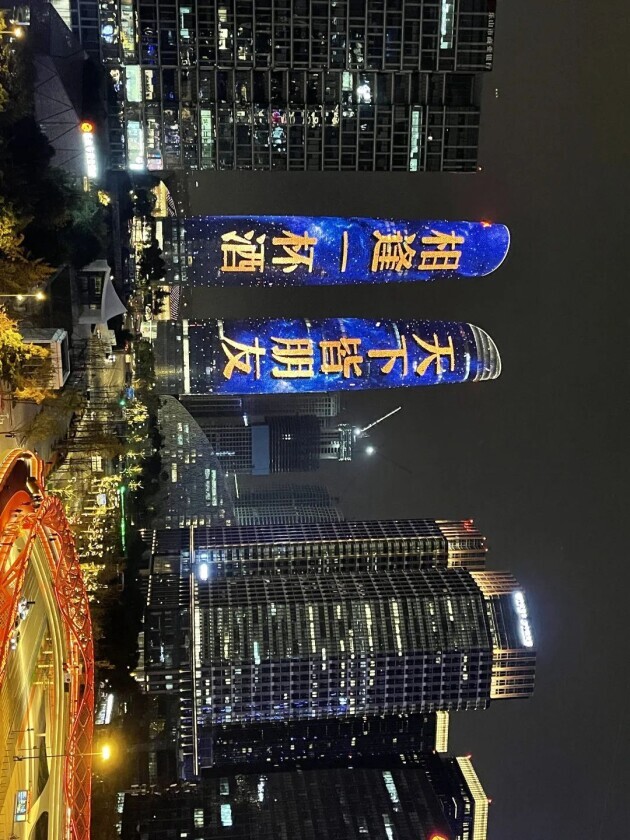 11月29日、30日肆拾玖坊分別在濟南、西安、南京、上海、北京、成都,深圳七個城市的標志性建筑上點亮了夜空,展開了一場極具震撼的城市燈光秀。 當肆拾玖坊泰斗酒在城市夜空華麗展現時