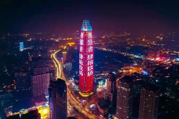 11月29日、30日肆拾玖坊分別在濟南、西安、南京、上海、北京、成都,深圳七個城市的標志性建筑上點亮了夜空,展開了一場極具震撼的城市燈光秀。