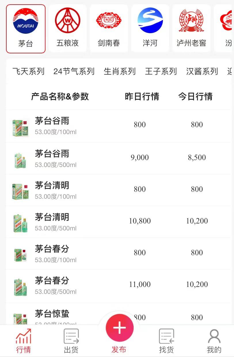 來自云酒說www.yunjiu.com價(jià)格行情頻道,提供今天(2023-06-28)茅臺節(jié)氣酒的價(jià)格。茅臺谷雨降價(jià)500元。茅臺清明降價(jià)600元。茅臺春分降價(jià)800元。