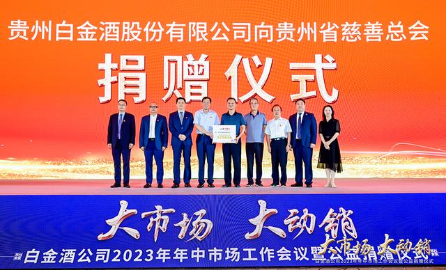 7月20日,“白金酒公司2023年年中市場工作會議暨公益捐贈儀式”在貴陽舉行。