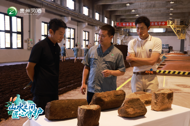 作為“蘊(yùn)、琢、煅、萃”中的“煅”字訣,高溫發(fā)酵極為考驗(yàn)制曲師的眼力、腦力和體力。撒貝寧和水哥在制酒車間觀察曲塊發(fā)酵和堆積,還近距離觀察三種釀酒曲塊,沉浸式感受習(xí)酒“作曲家”們細(xì)致入微的工作流程。