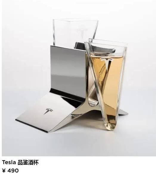 特斯拉中國官網還曾上線過限量版酒杯,整套包含玻璃杯和底座,售價490元。