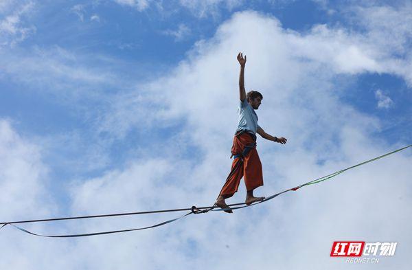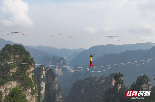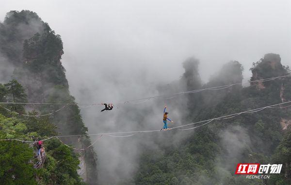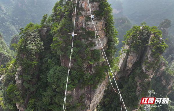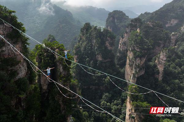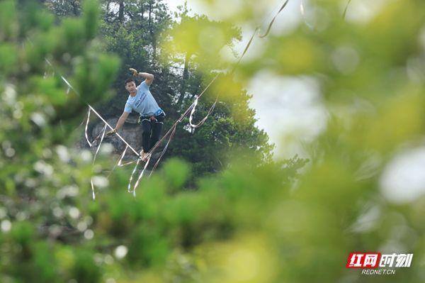 8月21日,“武陵源酒”2023年張家界黃石寨扁帶賽在張家界國家森林公園開賽,來自中國、法國、西班牙等國家和地區的12名選手在海拔1092米高的黃石寨山峰之巔驚險競技。比賽為期兩天。