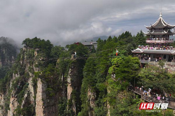 不上黃石寨,枉到張家界。自2018年以來,在黃石寨峰巔連續舉辦驚險刺激的高空扁帶對抗賽,吸引國內外眾多扁帶愛好者一決高下,讓張家界地貌神奇風光通過這種集競技性、時尚性和藝術性于一體的極限運動展現給世界。黃石寨扁帶賽已成為張家界“旅游+體育”又一張響亮名片。
