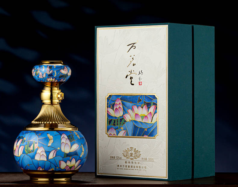 “萬茗堂”品牌之名由百年巨匠、一代宗師,中國陶瓷泰斗、陶瓷界首位工藝美術大師王錫良于百歲壽誕之際,親筆所題,彰其傳承。酒盒內側有中國國家畫院院委、研究員、中國美術家協會理事張江舟親筆所題的“何家美酒醉芳菲,攬入瓊漿萬茗堂”詩句,其中的詩意與畫意、欣賞價值與文化內涵相浸染,使其在一眾白酒中脫穎而出。