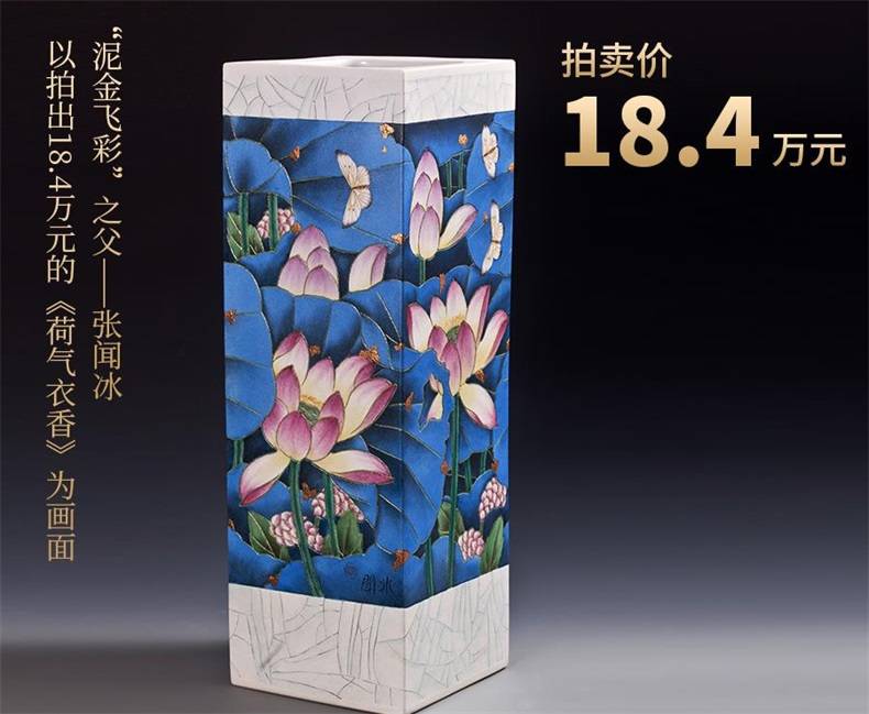 瓶身畫面以“泥金飛彩”之父張聞冰、拍出18.4萬元的《荷氣衣香》為原型創作,完美呈現張聞冰陶瓷鑲器《荷氣衣香》的神韻,畫面中有荷花、有蒼穹、有彩蝶,還有各式各樣的在天地間象征萬物生長的各種景色,呈現了一種晚風清涼,碧荷芳華的意境,整體給人一種出淤泥而不染的高尚情懷。