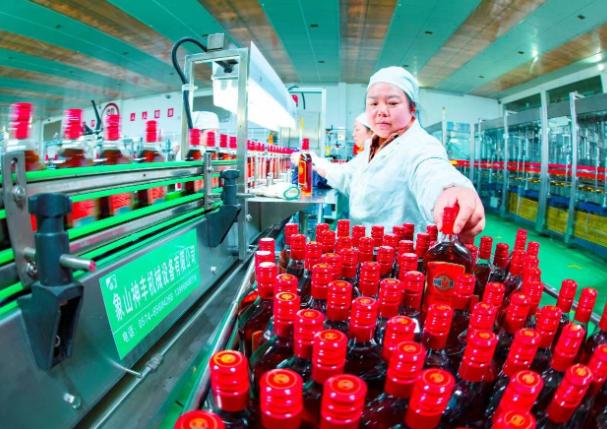 在勁牌酒廠包裝車間,放眼所見的是自動化生產線,一瓶瓶中國勁酒在線上流動,從灌裝入瓶到包裝入箱,一眼可以看到全流程。