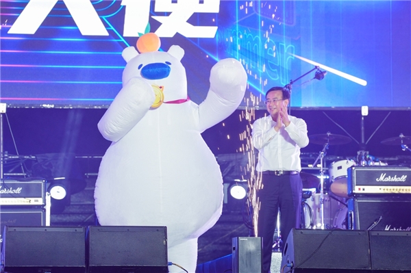 ( 一輕控股黨委書記、董事長(zhǎng)郭明星授予冰冰熊一輕品牌嘉年華形象大使 )