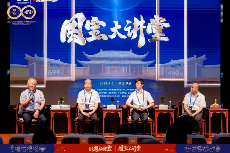 在交流分享環(huán)節(jié),陜西歷史博物館黨委書記、館長侯寧彬,中國文物學(xué)會副會長、中國文化遺產(chǎn)研究院原副院長王軍,中國文物學(xué)會副會長、第五批國家級非物質(zhì)文化遺產(chǎn)代表性項目代表性傳承人王津,瀘州老窖酒傳統(tǒng)釀制技藝第24代傳承人、瀘州老窖股份有限公司企業(yè)文化中心總經(jīng)理李賓,同臺共話國寶價值。