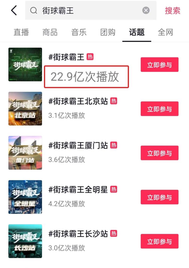 街球霸王,是國內首個由專業賽事運營方籌辦的街頭籃球聯賽,賽事幾乎集結了全中國頂級籃球廠牌,旨在為觀眾呈現最純正的中國街球氛圍。前NBA球員馬布里、肖恩•馬里昂、杰森•威廉姆斯、羅伯特•霍里等多位大牌球星紛紛加盟,為火熱的賽事再添話題。據官方數據統計,截至目前,街球霸王話題平臺播放量已超20億次,位列同城熱搜的首位及全國熱搜榜前列。