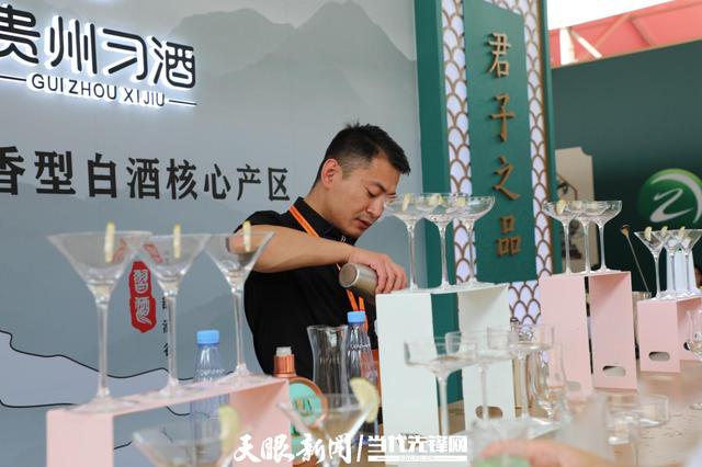 這是今年23歲的秦金峰第一次參加酒博會,畢業兩年的他和伙伴們帶來了來自貴州黔韻酒廠的“大摜潮·酒”。