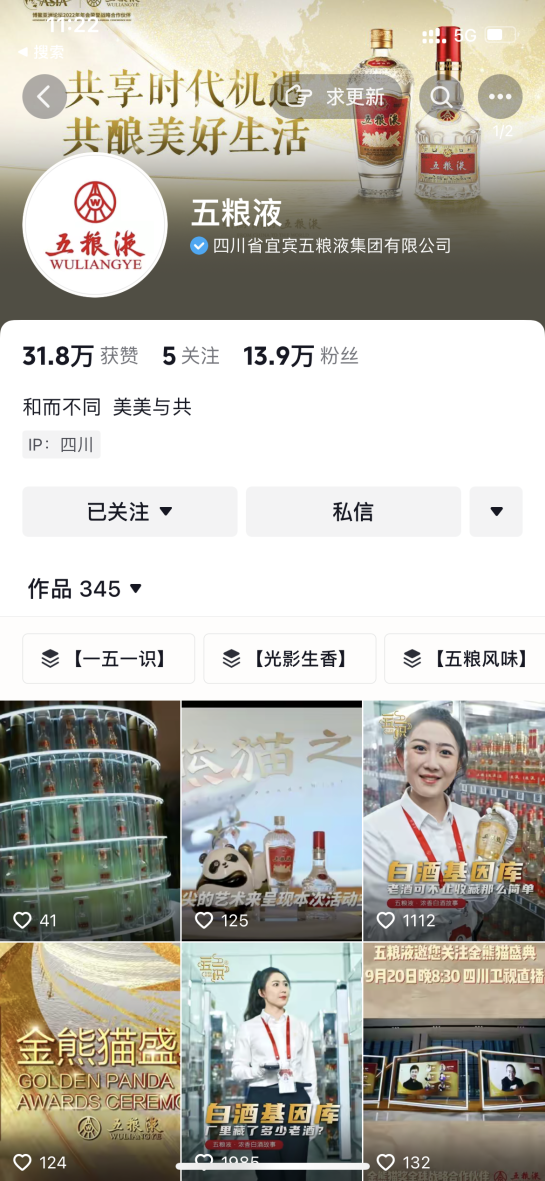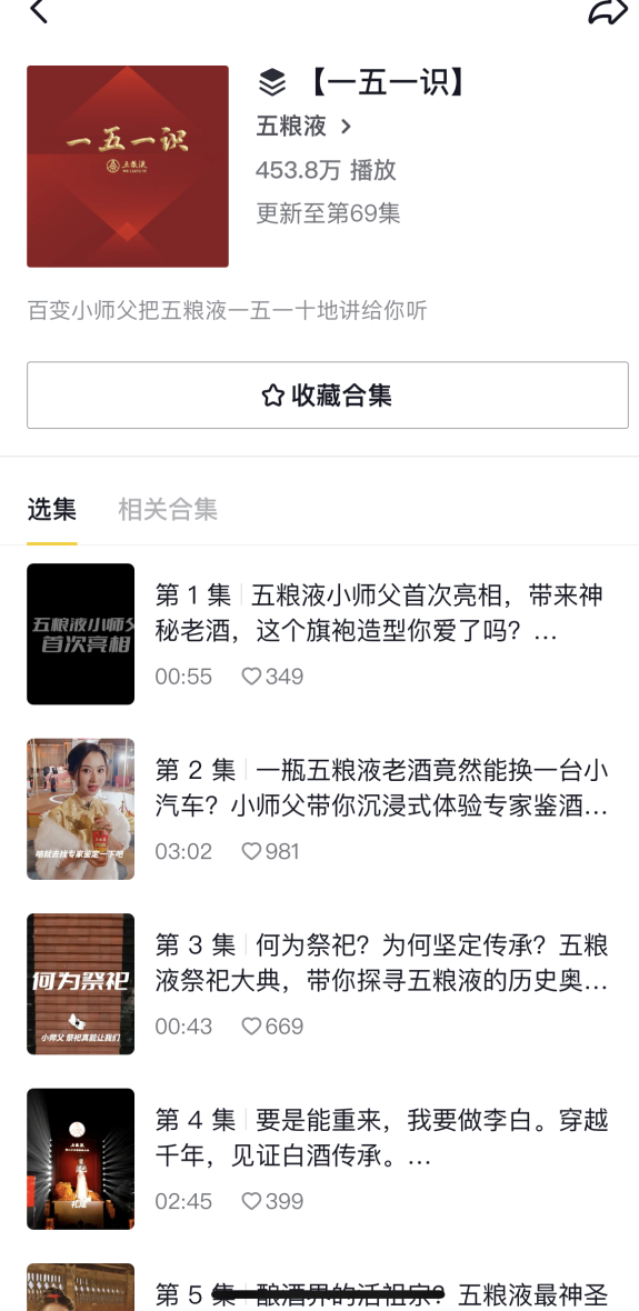 例如知名酒企五糧液,在自己公司官方短視頻賬號上推出的系列短視頻《一五一識》。