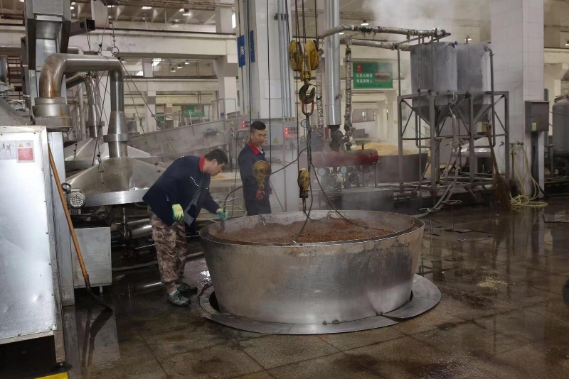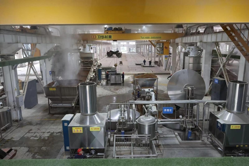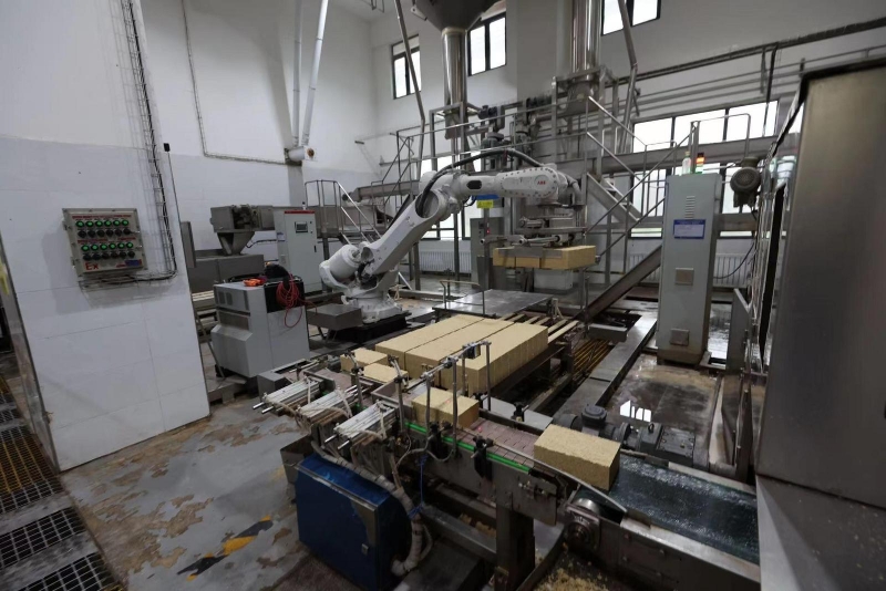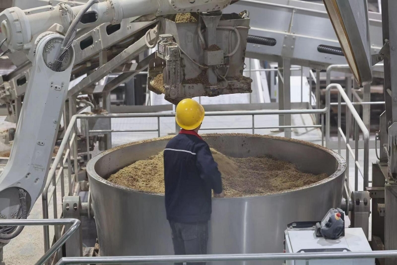 如今的西鳳酒釀造場景早已不是當初模樣。在全國首個全智能化釀酒車間——906車間,空氣中彌漫著濃濃的酒糟味,但這里看不到很多工人,偌大的廠房內,取而代之的是機械手臂、輸送機、摘酒設備、智能行車系統,有條不紊地工作著。在保留西鳳酒古法釀造精華的同時,工業機器人完成著自動化起入窖、自動化物料轉運、精準配糟、均勻拌和、機器人上甑、蒸餾精準控制等工序。