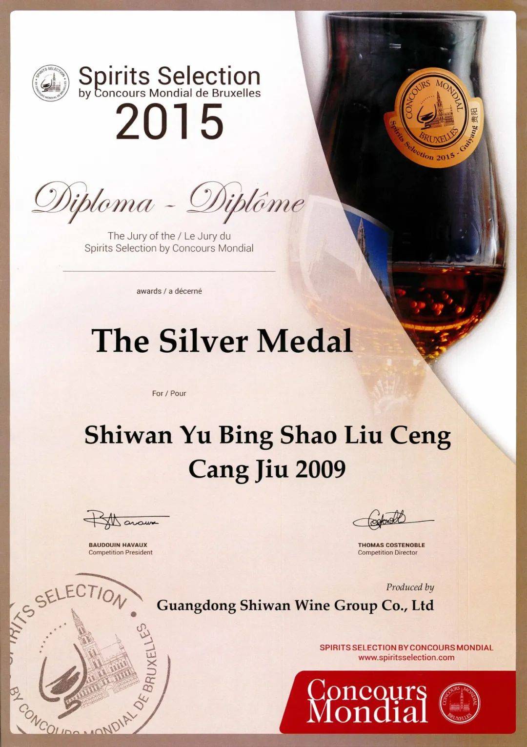 ▲“石灣玉冰燒·六埕藏酒”榮獲2015比利時(shí)布魯塞爾國(guó)際烈性酒大獎(jiǎng)賽銀獎(jiǎng)榮譽(yù)。