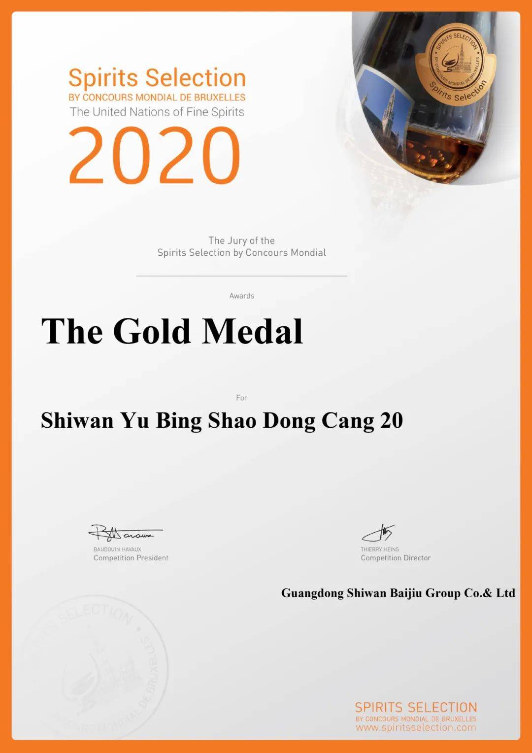 ▲“石灣玉冰燒·洞藏二十”榮獲2020比利時(shí)布魯塞爾國(guó)際烈性酒大獎(jiǎng)賽金獎(jiǎng)榮譽(yù)。