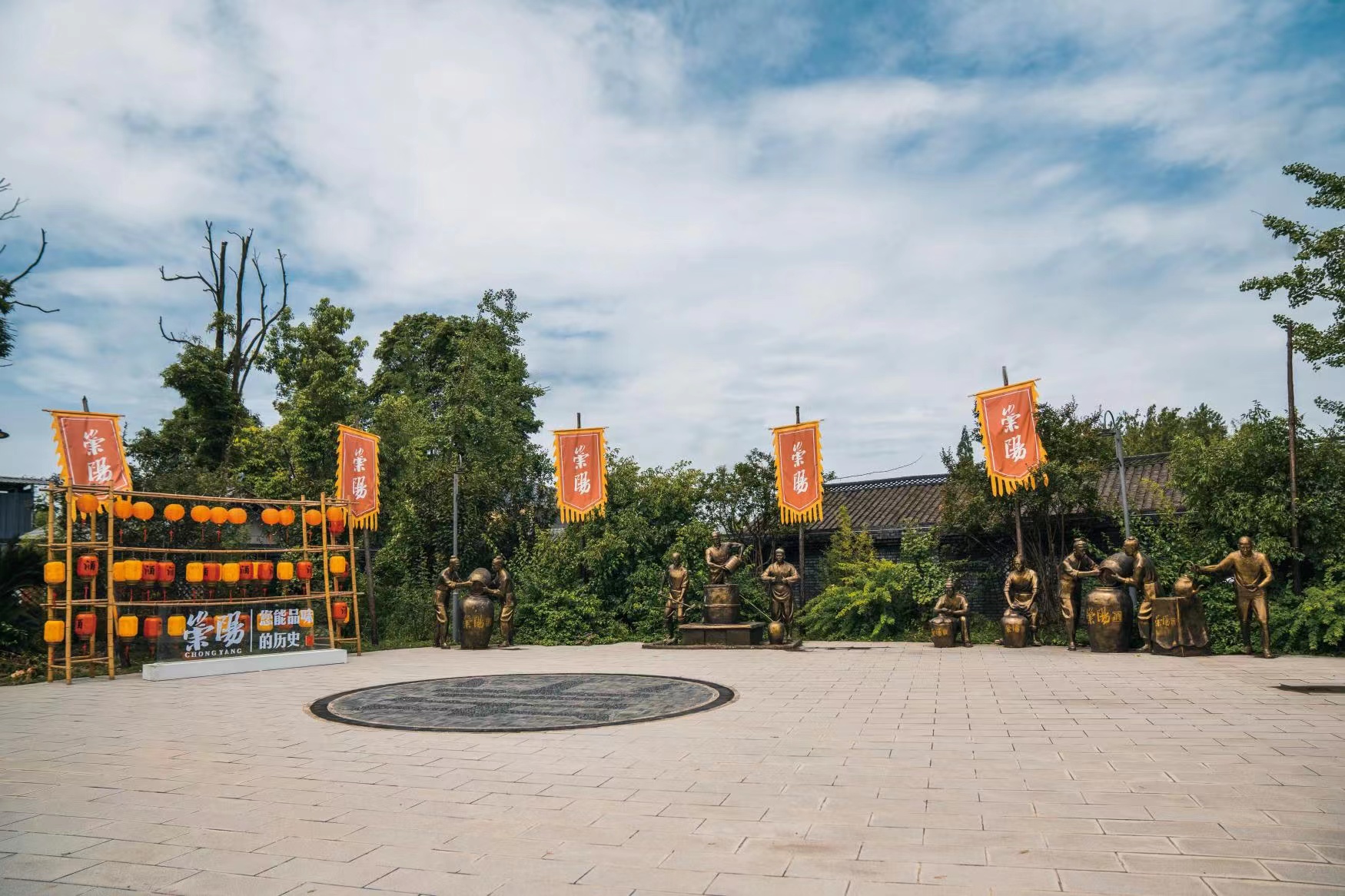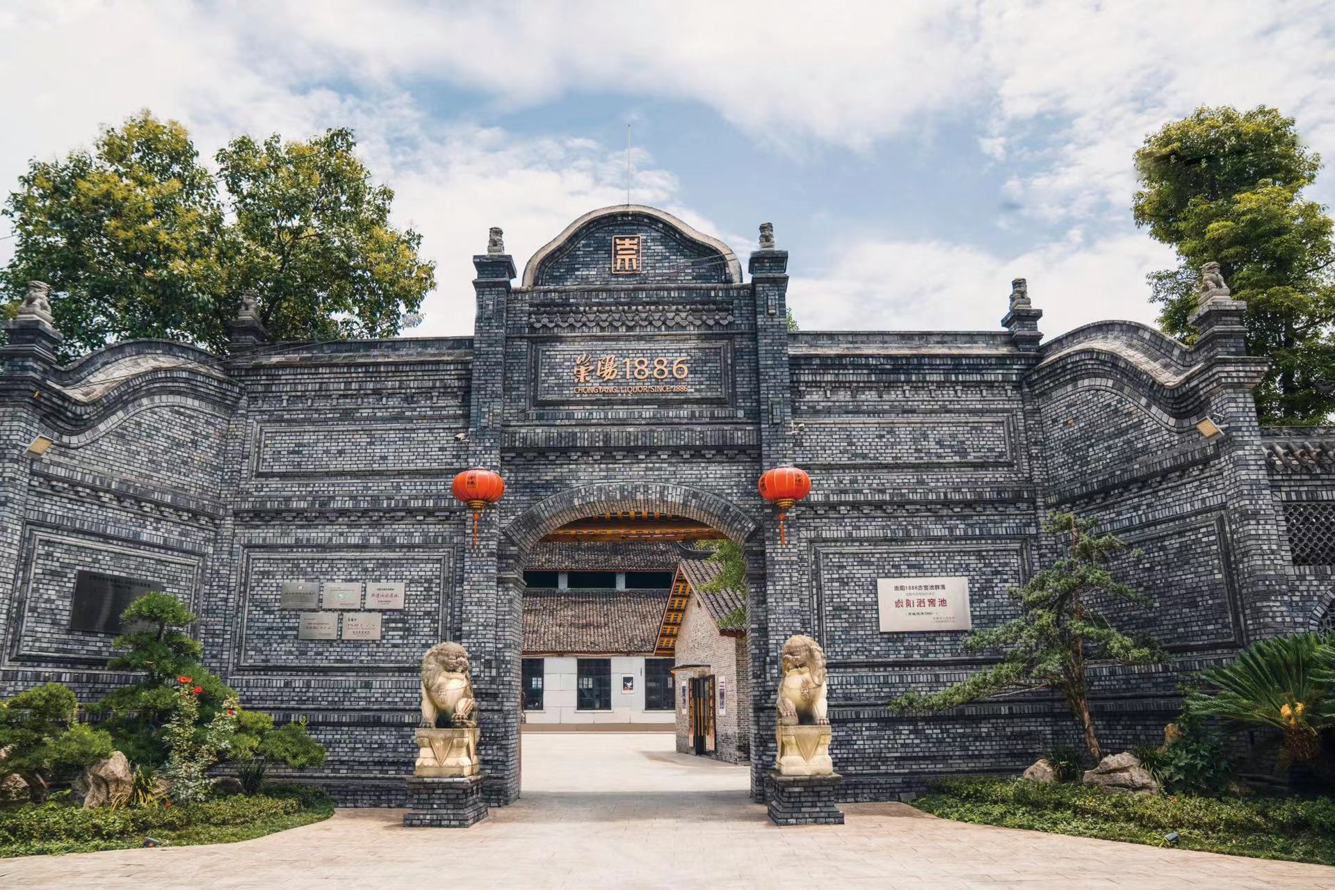 北有杏花村,南有梁景村。崇陽1886年清代老窖池群就坐落于成都崇州市隆興鎮梁景村的天府酒村。經過一片片稻田,還未到窖池,人的視覺和嗅覺功能就率先被喚醒。滿目的蒼翠間,點綴著幾間農家小院,酒糟的香味爭相恐后地涌入鼻腔,讓人的精神為之一振。這里生動地詮釋著“百里田園農耕韻,古窖酒魂醉川西”。
