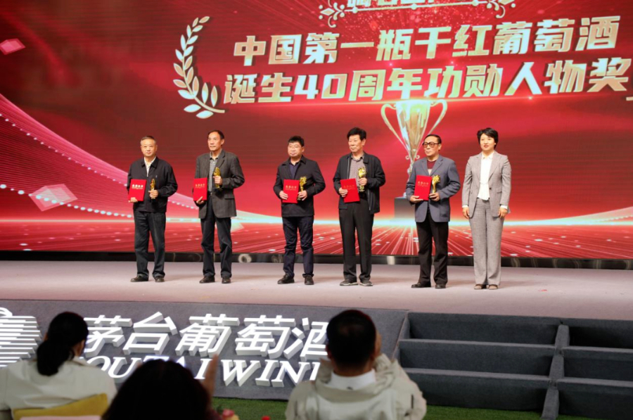 在四十年產區貢獻頒獎儀式上,與會領導嘉賓為碣石山產區葡萄酒產業發展做出突出貢獻的相關企業和人員進行頒獎。
