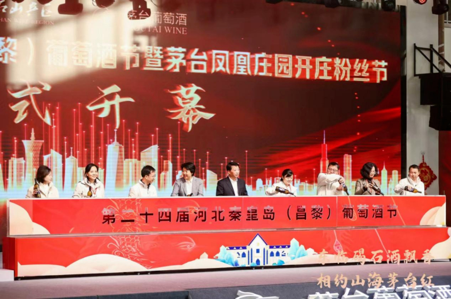 10月19日,由中國酒業協會、秦皇島市人民政府主辦,中共昌黎縣委、縣人民政府和貴州茅臺酒廠(集團)昌黎葡萄酒業有限公司承辦,主題為“東臨碣石酒飄香 相約山海茅臺紅”的第24屆河北秦皇島(昌黎)葡萄酒節暨茅臺鳳凰莊園開莊粉絲節在茅臺葡萄酒公司鳳凰莊園啟幕。來自國內葡萄酒行業的專家學者、碣石山產區葡萄酒企業代表、葡萄酒經銷商、供應商代表、茅臺葡萄酒粉絲以及新聞媒體等相聚碣石山下,話情誼,品美酒,共享美時代美生活。