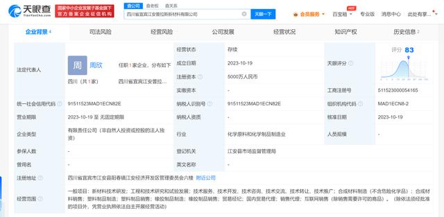 近日,記者從天眼查App獲悉,四川省宜賓江安普拉斯新材料有限公司成立,法定代表人為周欣,注冊資本5000萬人民幣,經營范圍含新材料技術研發、工程和技術研究和試驗發展、塑料制品制造、塑料制品銷售、橡膠制品制造、橡膠制品銷售等。