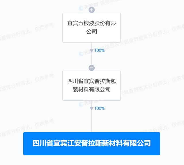 股權全景穿透圖顯示,該公司由四川省宜賓普拉斯包裝材料有限公司全資持股,后者為五糧液(000858)全資子公司。