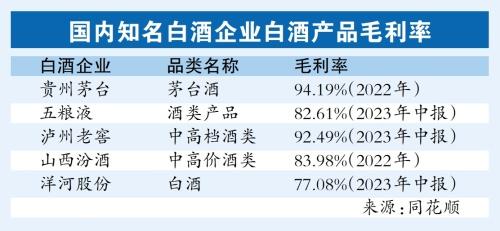 不菲的利潤是造假頭部名酒現象不斷的背后主因。以貴州茅臺為例,飛天茅臺在市面上就“一瓶難求”,產品零售價更有高溢價。該公司2023年半年報顯示,上半年營收695.76億元,同比增幅達20.76%,貴州茅臺自2019年以來半年營收增長率首破20%,凈利潤359.80億元,同比增長20.76%。2022年,該公司綜合毛利率為94.19%,而2023年上半年,五糧液酒類產品毛利率是82.61%,瀘州老窖的中高檔酒類毛利率為92.49%。