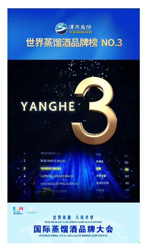 世界第三,洋河新高度!洋河榮登世界蒸餾酒品牌榜