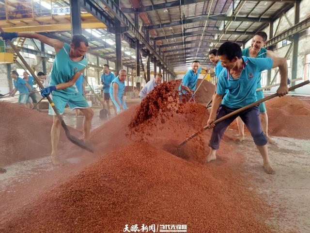 九月九,釀新酒。進入農歷九月,連日來,位于赤水經濟開發區的貴州貴粱酒業有限公司釀酒生產車間,工人輪番作業,潤糧、攤晾、封窖一派忙碌景象。 貴粱酒業釀酒車間,工人正在進行下