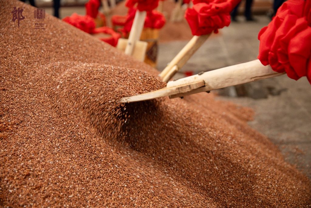 在釀造工藝上,青花郎嚴(yán)守“12987”釀造技藝,遵循“端午制曲、重陽下沙”的天時(shí)。每一粒青花郎原料郎糯紅19號(hào)都要?dú)v經(jīng)一年一個(gè)周期、兩次投糧、九次蒸煮,八次發(fā)酵、七次取酒,才能蛻變?yōu)樵骗倽{。