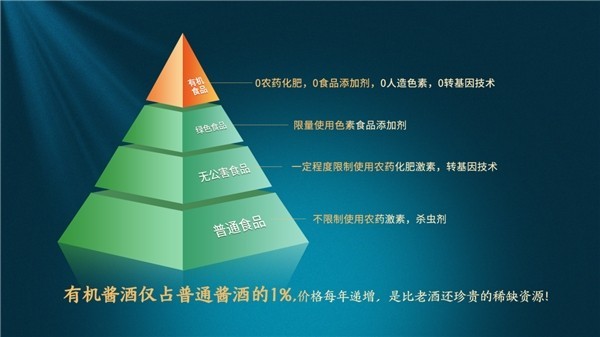 酒廠代表表示,匠王臺有機醬酒是在傳統(tǒng)醬香型白酒釀造技藝:純糧釀造、固態(tài)發(fā)酵、嚴格遵守12987古法釀造技藝的基礎(chǔ)上,增加了有機產(chǎn)品的生產(chǎn)標準,形成了醬香白酒和有機理念的深度融合,打造出“零添加、零污染、純天然”的健康醬酒產(chǎn)品。
