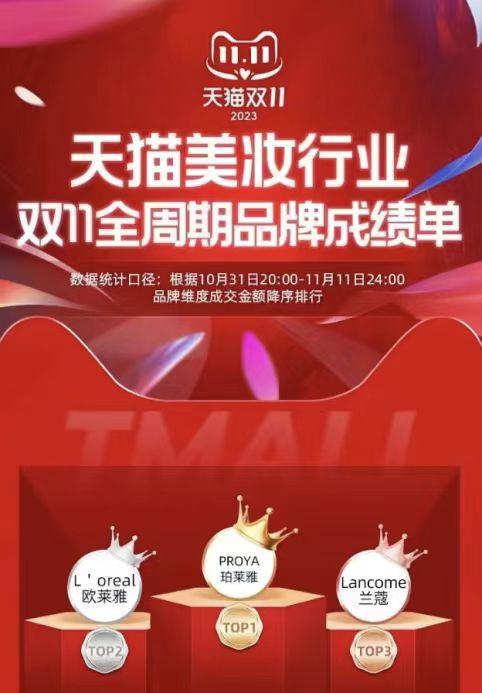 近幾年,天貓雙十一美妝品牌榜前三甲一直牢牢掌握在歐萊雅、雅詩蘭黛、資生堂等外資品牌手中,進入前十榜的國貨品牌少之又少,且排名相對靠后。但在今年,不少國產品牌似乎表現更為積極。其中,珀萊雅的戰績格外亮眼,在天貓發布的快消榜單上,珀萊雅僅次于歐萊雅,排名第二。