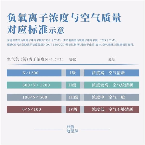 在科創的支持下,舍得能夠更為精準且有針對性地把控植被種植與環境的關系,這種關系就可以從負氧離子濃度數據中清楚呈現。制圖/好酒地理局視覺中心