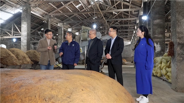 全興酒業蒲江大塘生產基地主任劉昌斌帶領探廠團一行先后深入曲房、釀酒車間、陶壇儲酒區,詳細講解了“傳世水譜”“秘制雙曲”“超長發酵”“降度儲存”四大獨特工藝的奧秘所在。