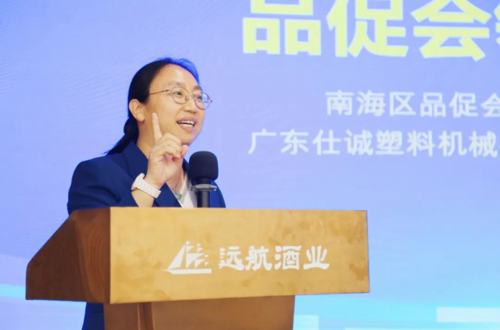 ▲區品促會聯合創始人、會長、廣東仕誠塑料機械有限公司總經理 秦志紅 發言