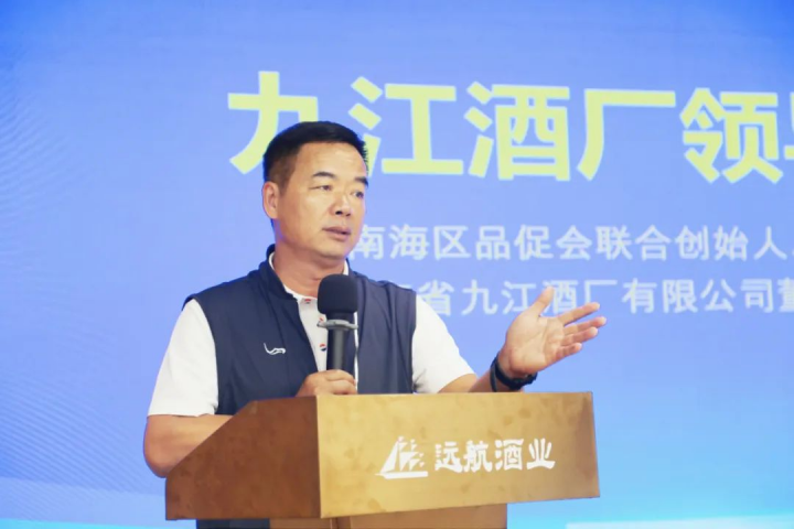 區品促會會長秦志紅發表講話,她首先感謝九江酒廠為區品促會企業代表提供了非常好的交流學習機會,并承諾區品促會后續將繼續做好橋梁、紐帶作用,開展更多名企參觀、主題分享、專業培訓、商務交流等活動,實現好渠道、好資源的相互賦能,助推南海品牌企業抱團發展。