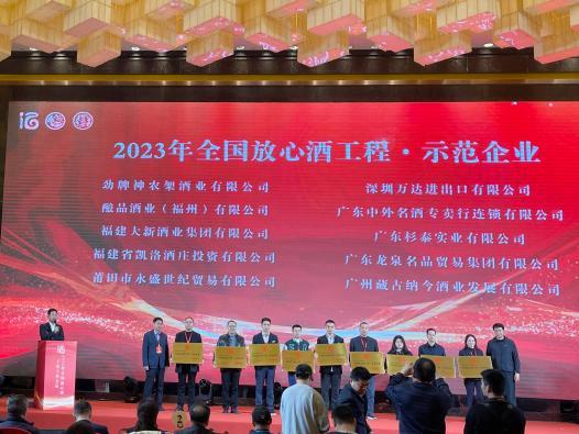 2023年12月13日,在江西南昌召開的2023年全國放心酒工作會議上,勁牌神農架酒業有限公司憑借卓越的產品質量、嚴格的企業管理和品質管控榮獲全國放心酒工程示范企業榮譽稱號。 2023年全國放